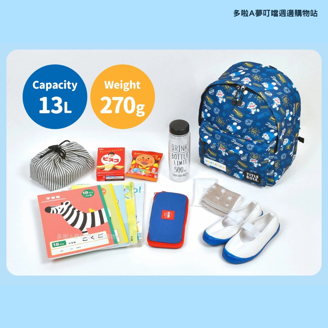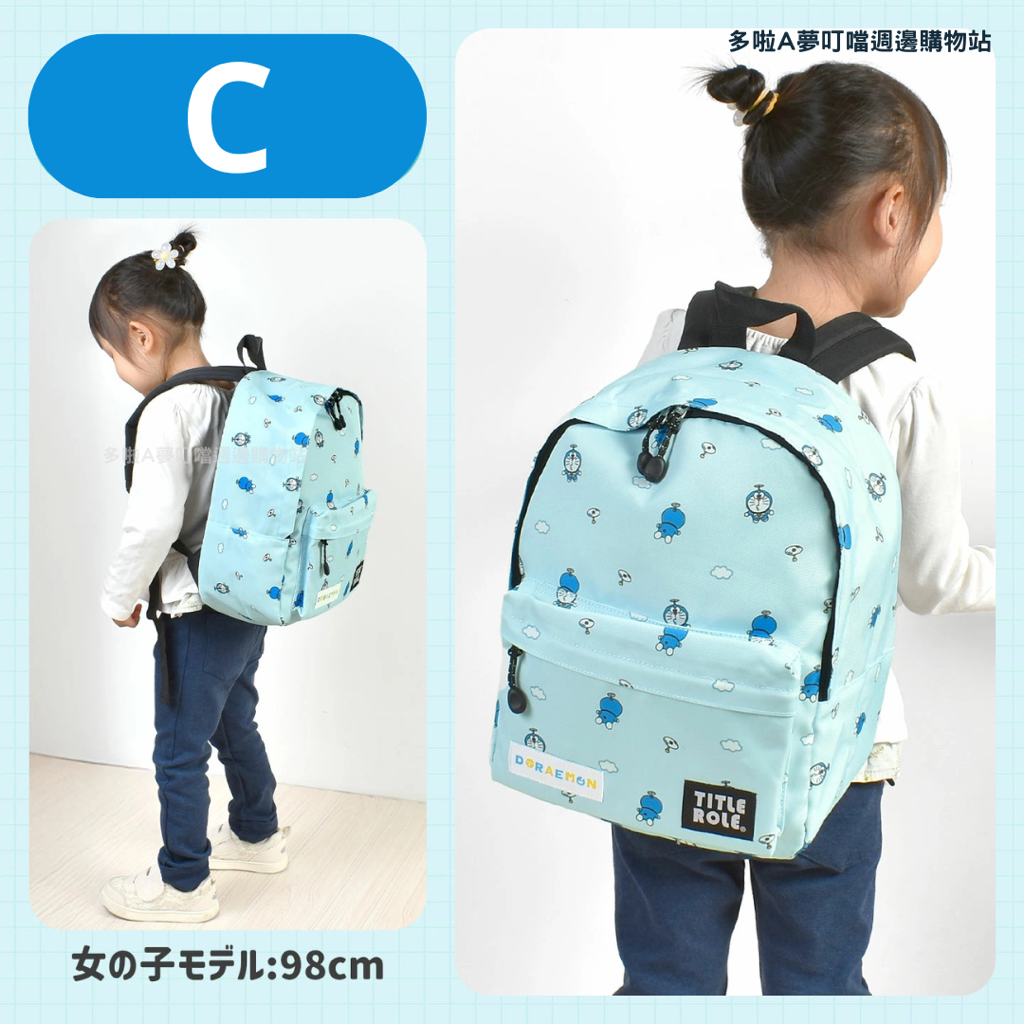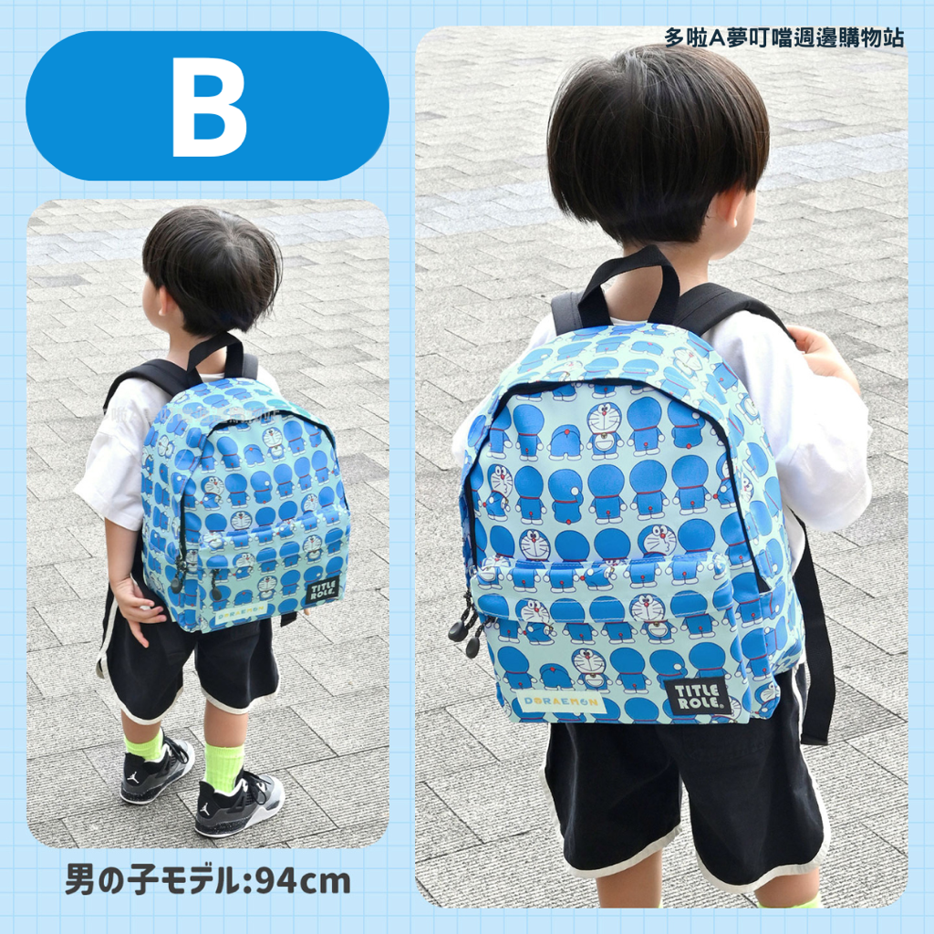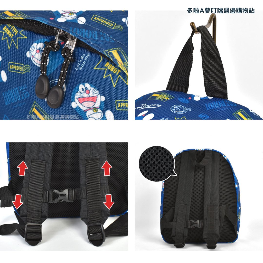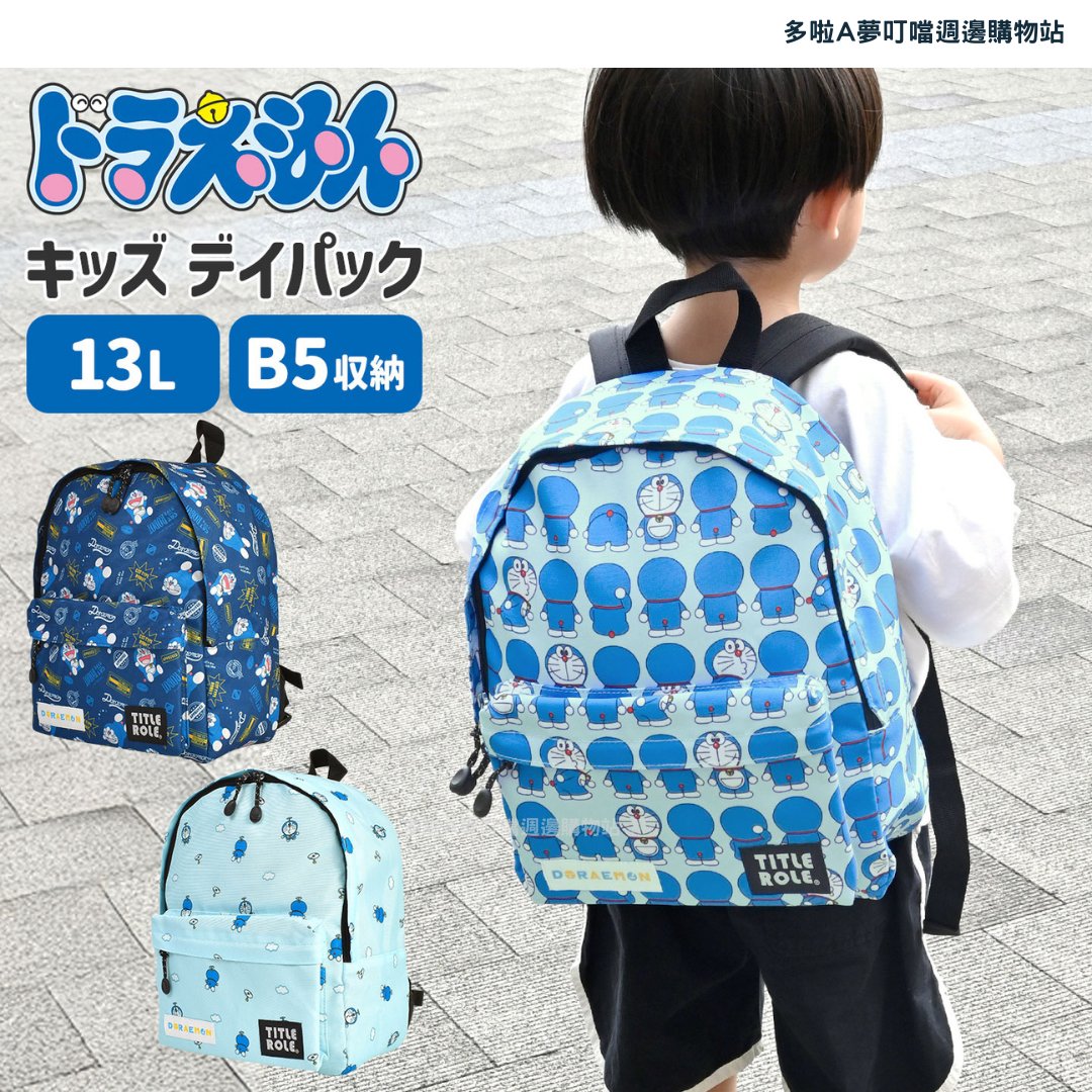 日本新發售!有三款Doraemon圖案。非常適合幼稚園、戶外活動和日常使用! Size: H33xW27xD13cm 配備胸帶,即使小朋友四處走動,肩帶也不會滑落。採用透氣網眼布料,背負舒適,不會悶熱。